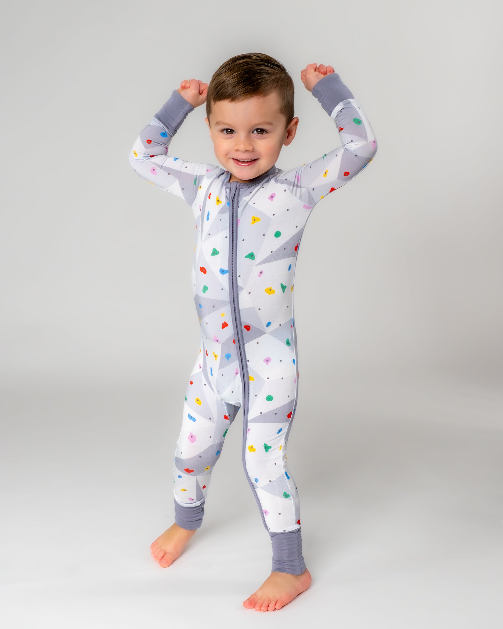 Our Tiny Ascender print climbs high with geometric wall panels and colorful handholds—just right for little climbers with big goals (and bigger naps).