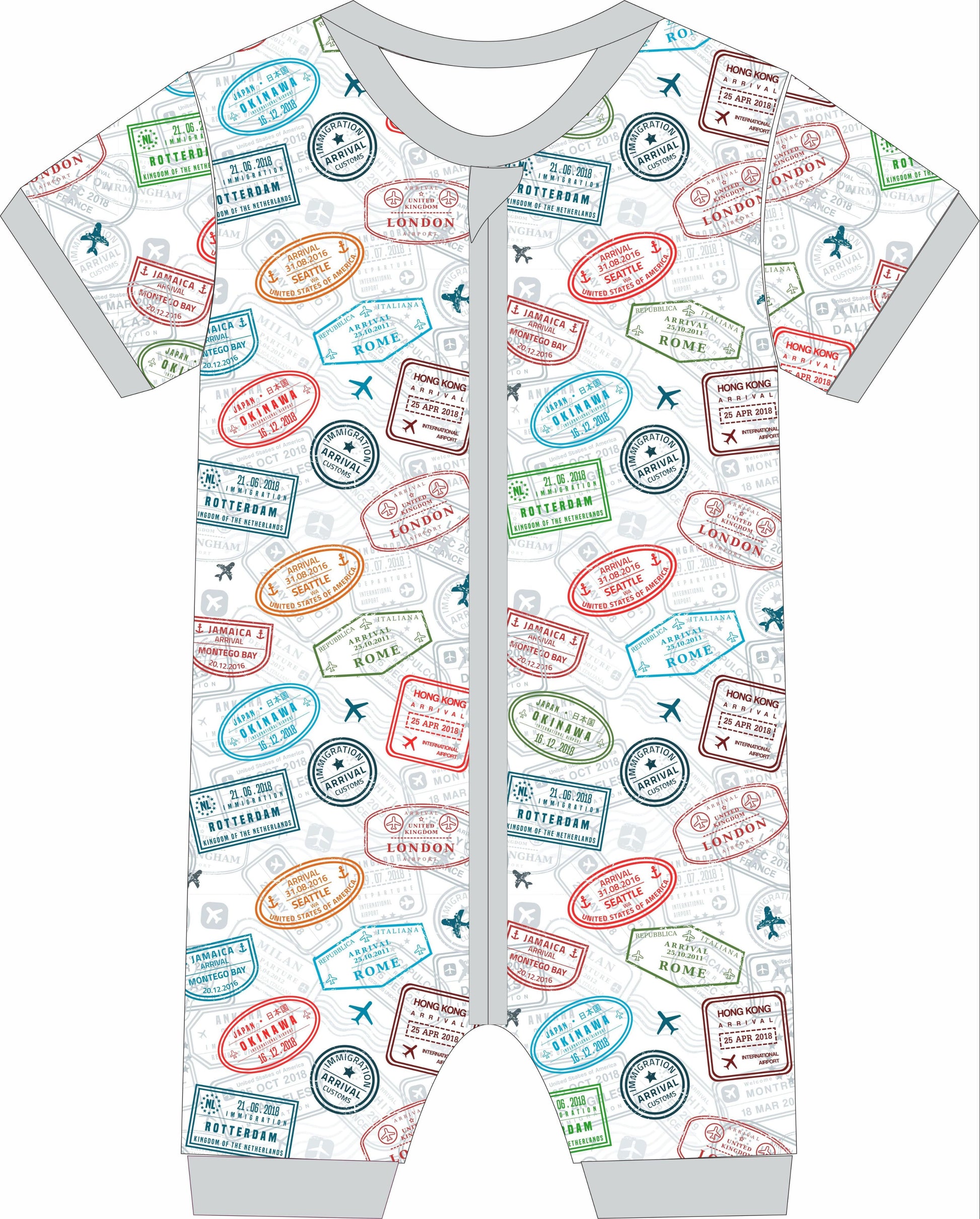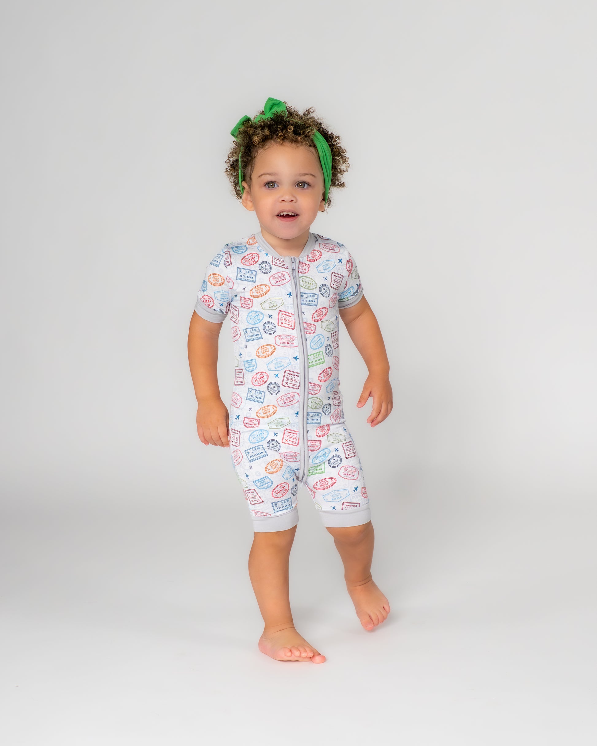 Our Lil Traveler print is playfully stamped with passport marks and tiny airplanes—perfect for mini jet-setters and big daydreams.
