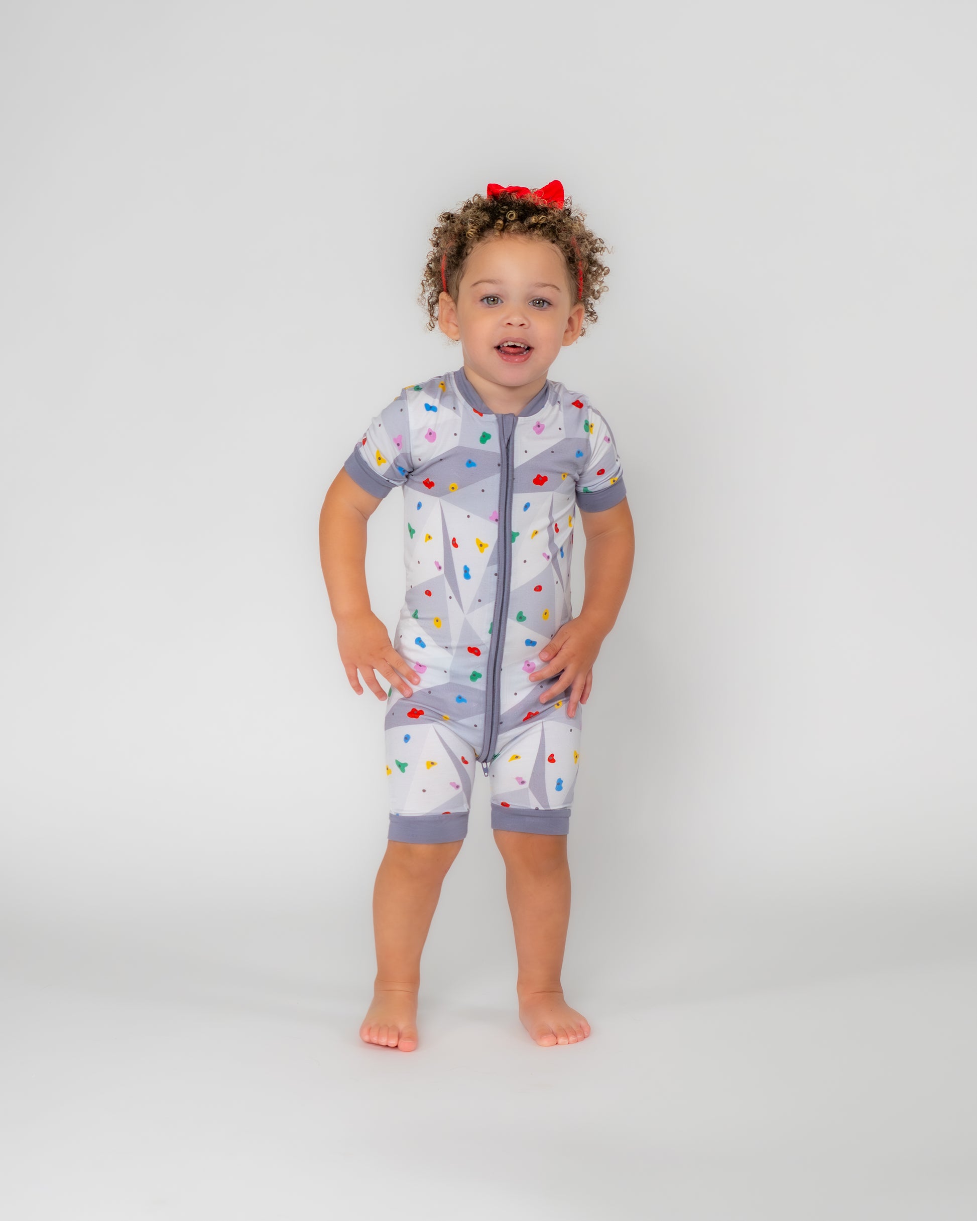 Our Tiny Ascender print climbs high with geometric wall panels and colorful handholds—just right for little climbers with big goals (and bigger naps).